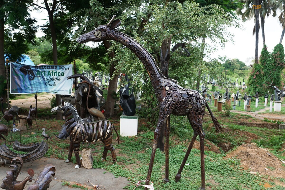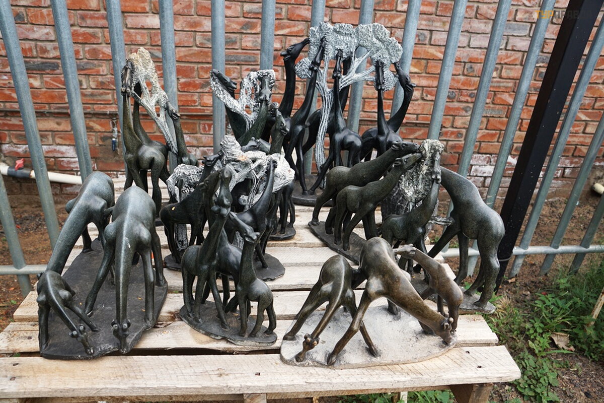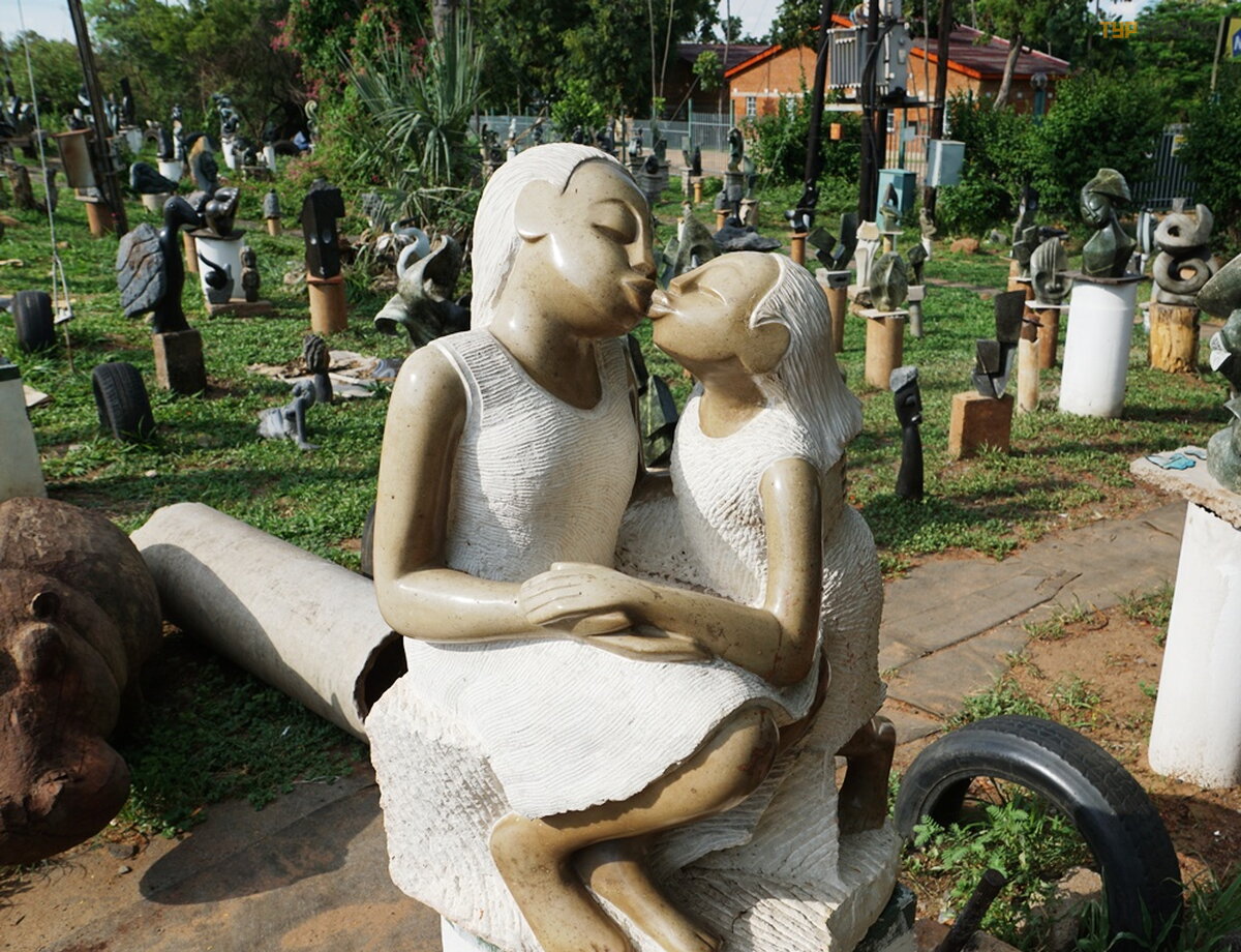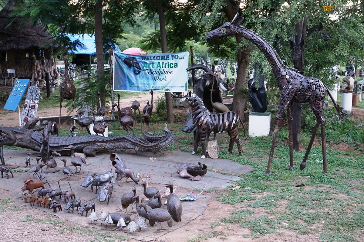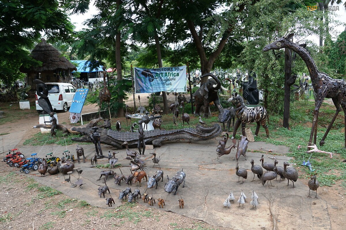 Miasto Wodospadó w Wiktorii został o zbudowane i jest budowane jakoś chaotycznie. Kto chce tego, czego chce, buduje, jak chce, jeś li miejscowy wó dz dostanie pienią dze. Był em zdumiony masową produkcją ró ż nych figurek ze wszystkiego, co moż na znaleź ć . Niektó re rzeź by zachwycają jego artystę , ponieważ są wykonywane przez prostych, mocno opalonych mieszkań có w, któ rzy stali się mistrzami w swoim rzemioś le. Podobno rzeź b w tym mieś cie jest wię cej niż w cał ej Afryce.